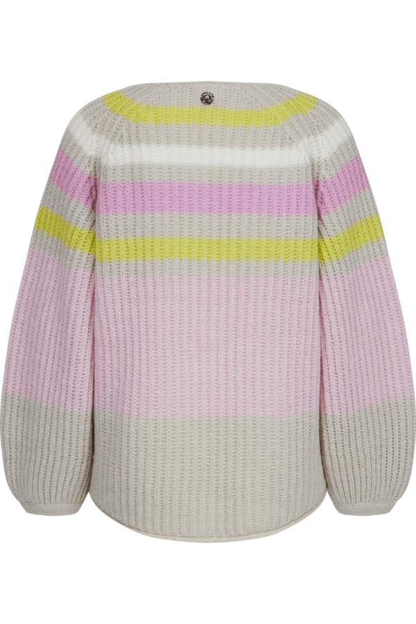 Durch das offene Perfang-Muster bekommt der Pullover eine interessante Struktur und die Blockstreifen kommen perfekt zur Geltung.